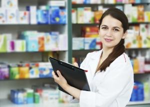 Pharmacy chemist woman in drugstore